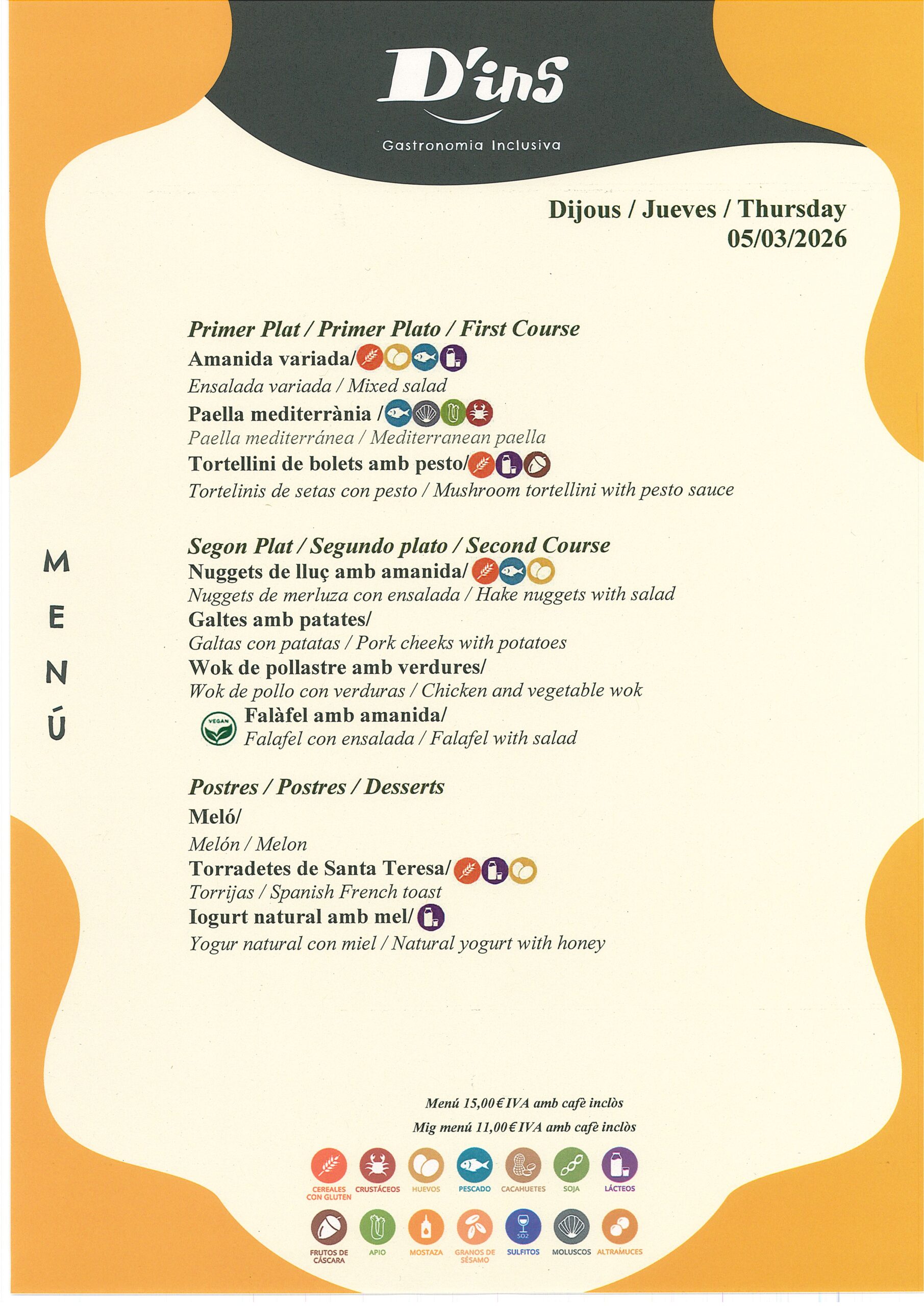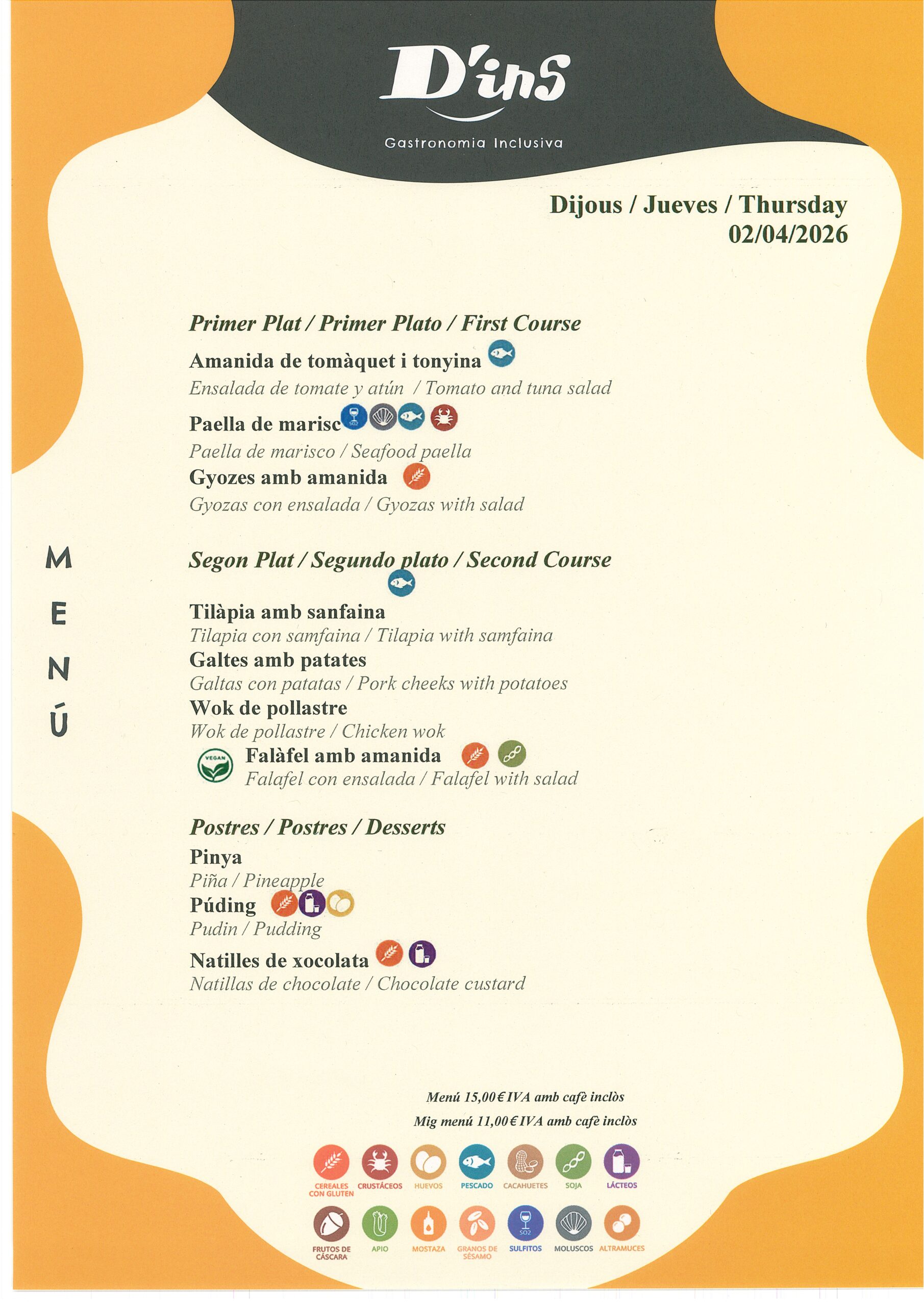 Restaurante, con servicio de desayuno y de almuerzo, ubicado en Nou Barris, en el edificio del Parque Tecnológico – Barcelona Activa. D’ins Activa es un lugar de encuentro y desconexión amplio, luminoso, moderno y abierto a todos los públicos, que aporta a la ciudad un espacio de consumo responsable. Además, la iniciativa ofrece una oportunidad laboral a 7 personas provenientes de itinerarios de inserción sociolaboral realizados en la Fundación Formació i Treball (entidad impulsora del proyecto social). El restaurante cuenta con una amplia terraza exterior rodeada por un lago, en la que se puede disfrutar de un aperitivo, una comida al aire libre o tomar algo por la tarde.