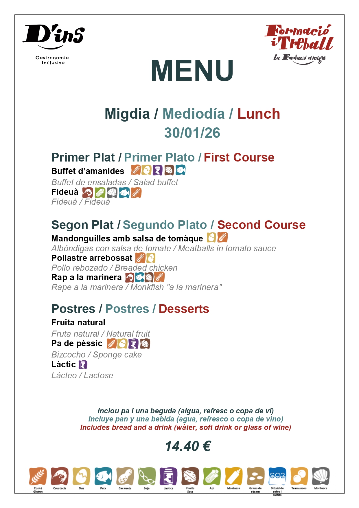El servicio de Menú es un bufet asistido por nuestro personal en el que encontrarás opciones aptas para todas. Cada día se elabora un menú casero, saludable, con productos de proximidad y trabajando para evitar el malbaratamiento alimentario.